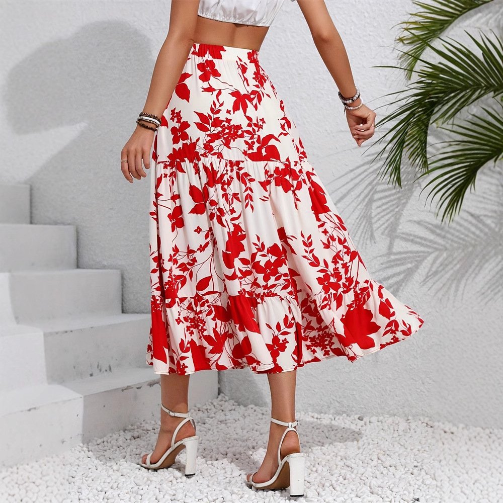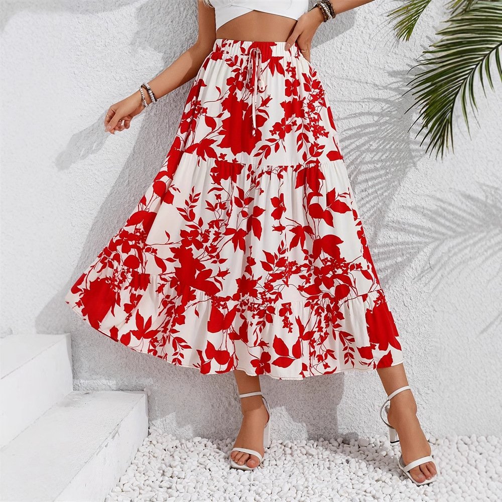 Beach skirt Casual women’s clothing with floral prints and pleated skirt