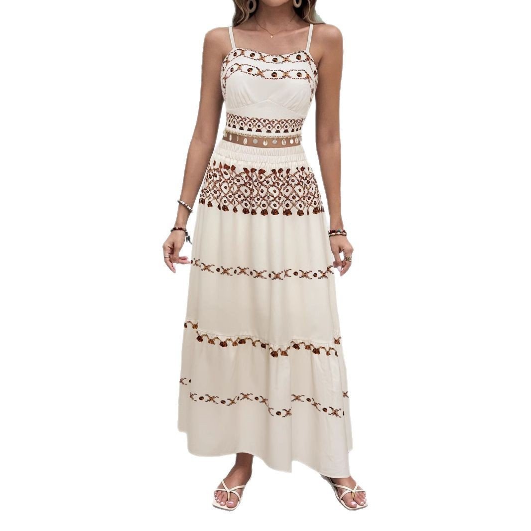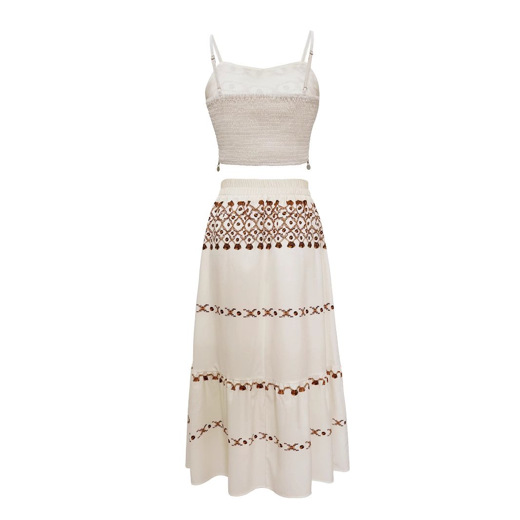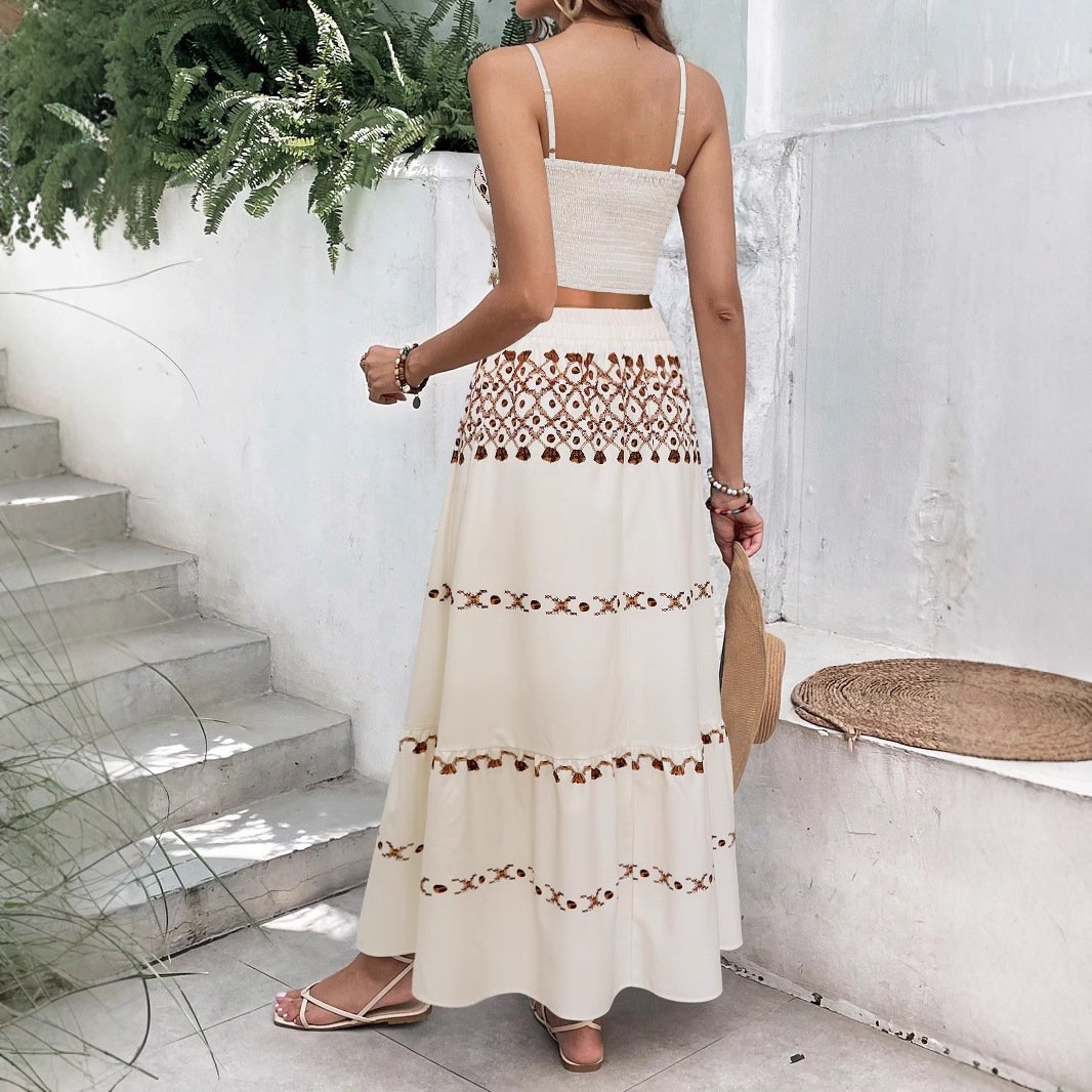 Bohemian Holiday Positioning Printed Beach Women’s Set Tassel Webbing Sling Top Skirt Two-piece Set