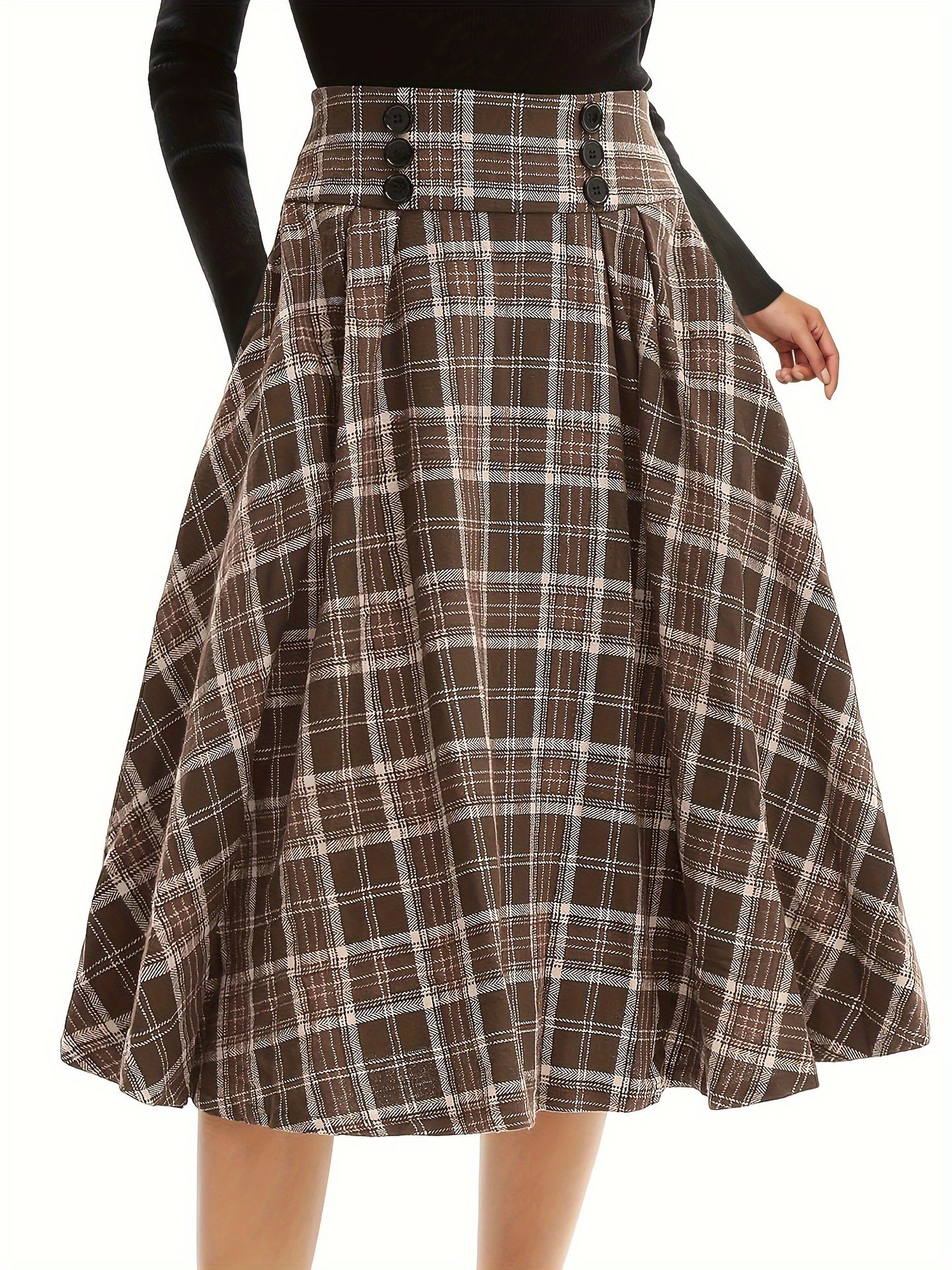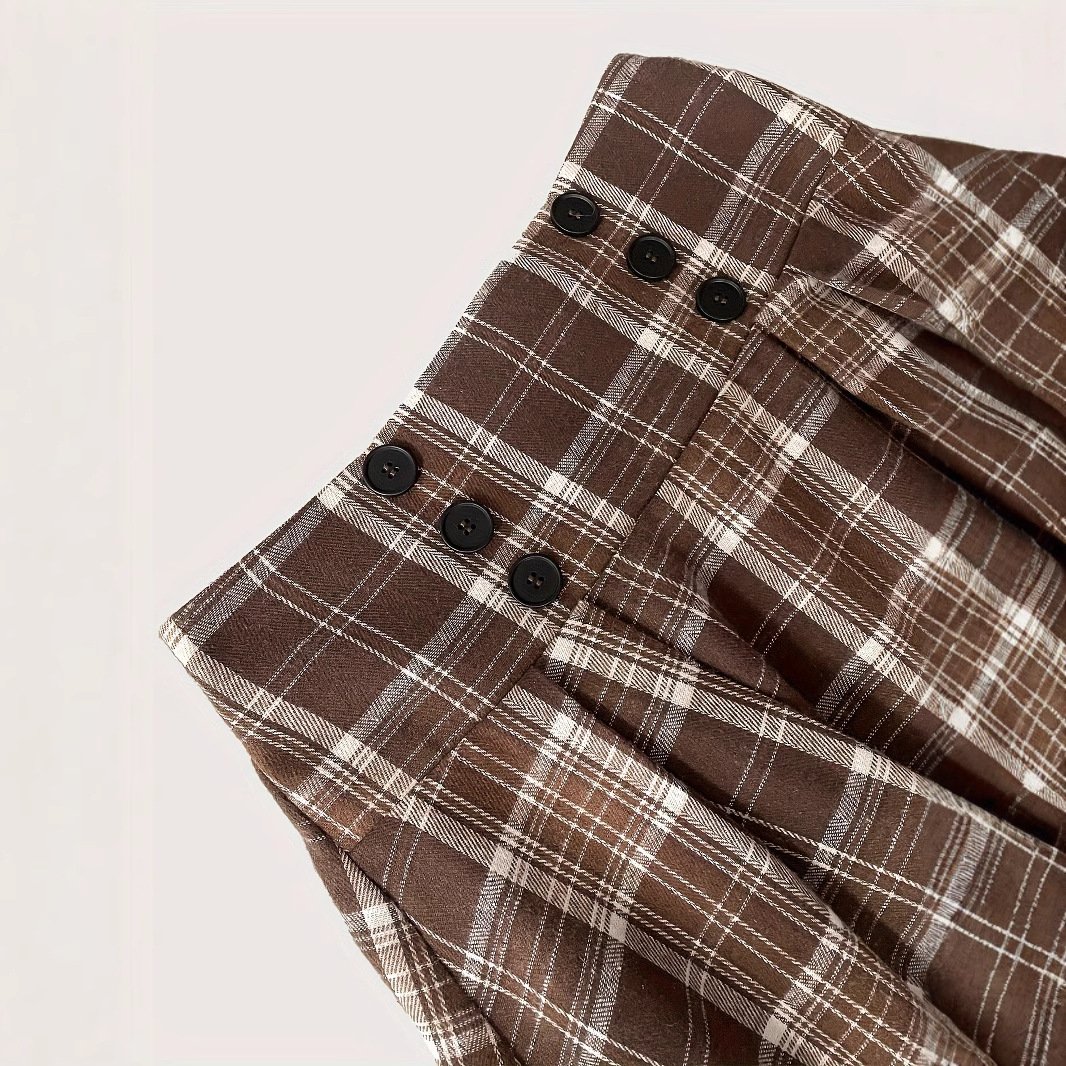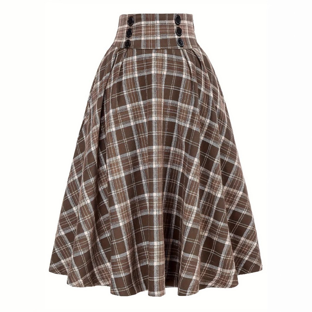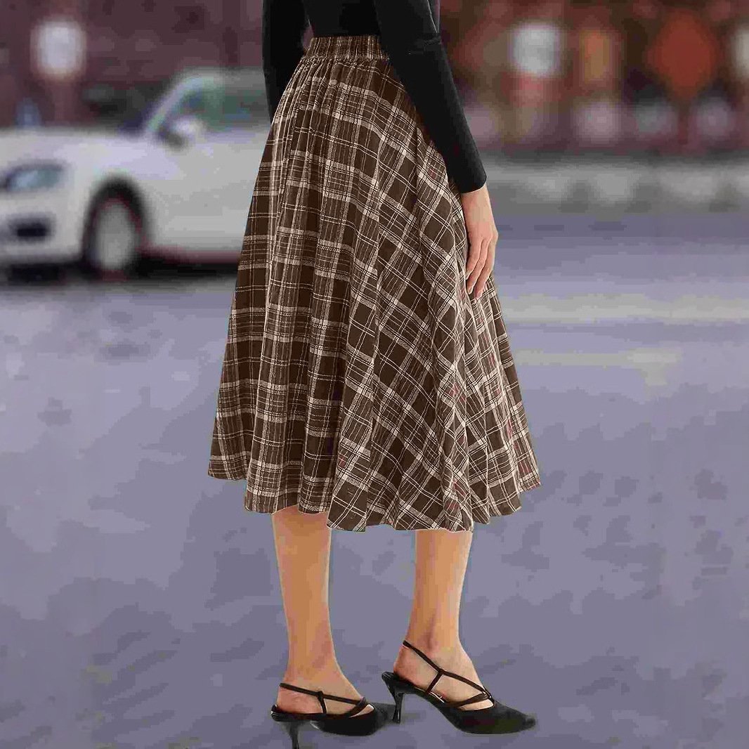 Classic velvet plaid double-breasted high-waist long umbrella skirt for women