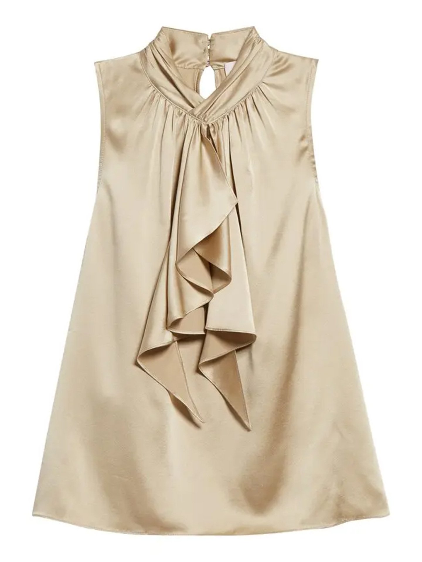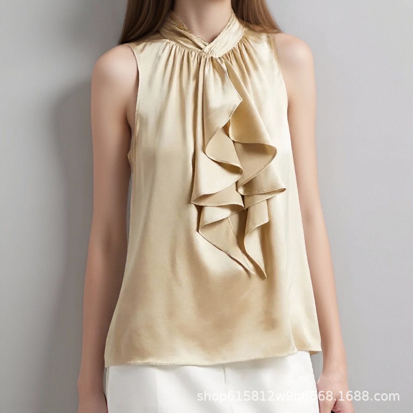 Elegant casual workplace women’s summer ruffled sleeveless wavy trunk turtleneck top