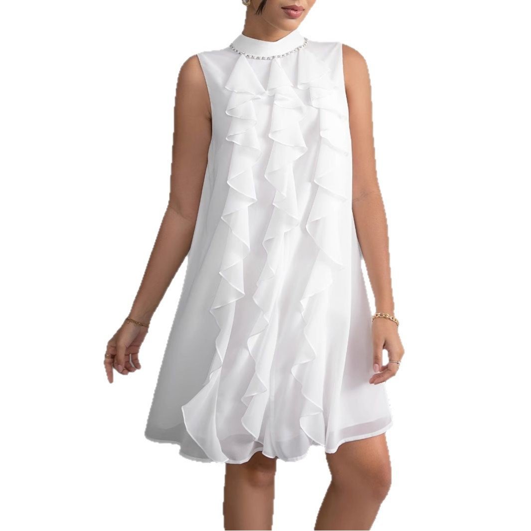 | color | Solid color irregular ruffled cheongsam collar dress |