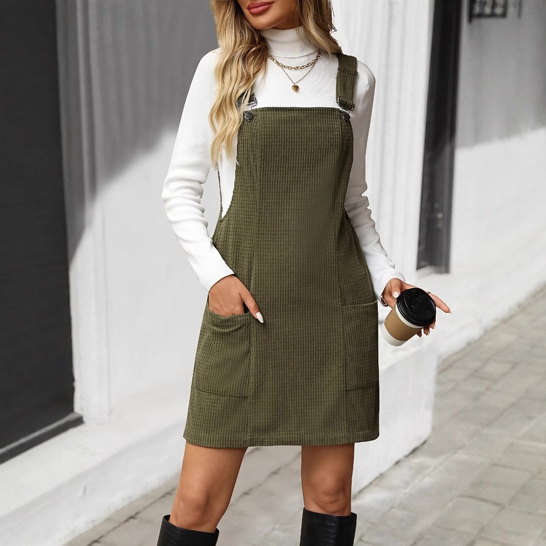 Fashionable and personalized casual dress textured fabric adjustment shoulder strap pocket short strap skirt