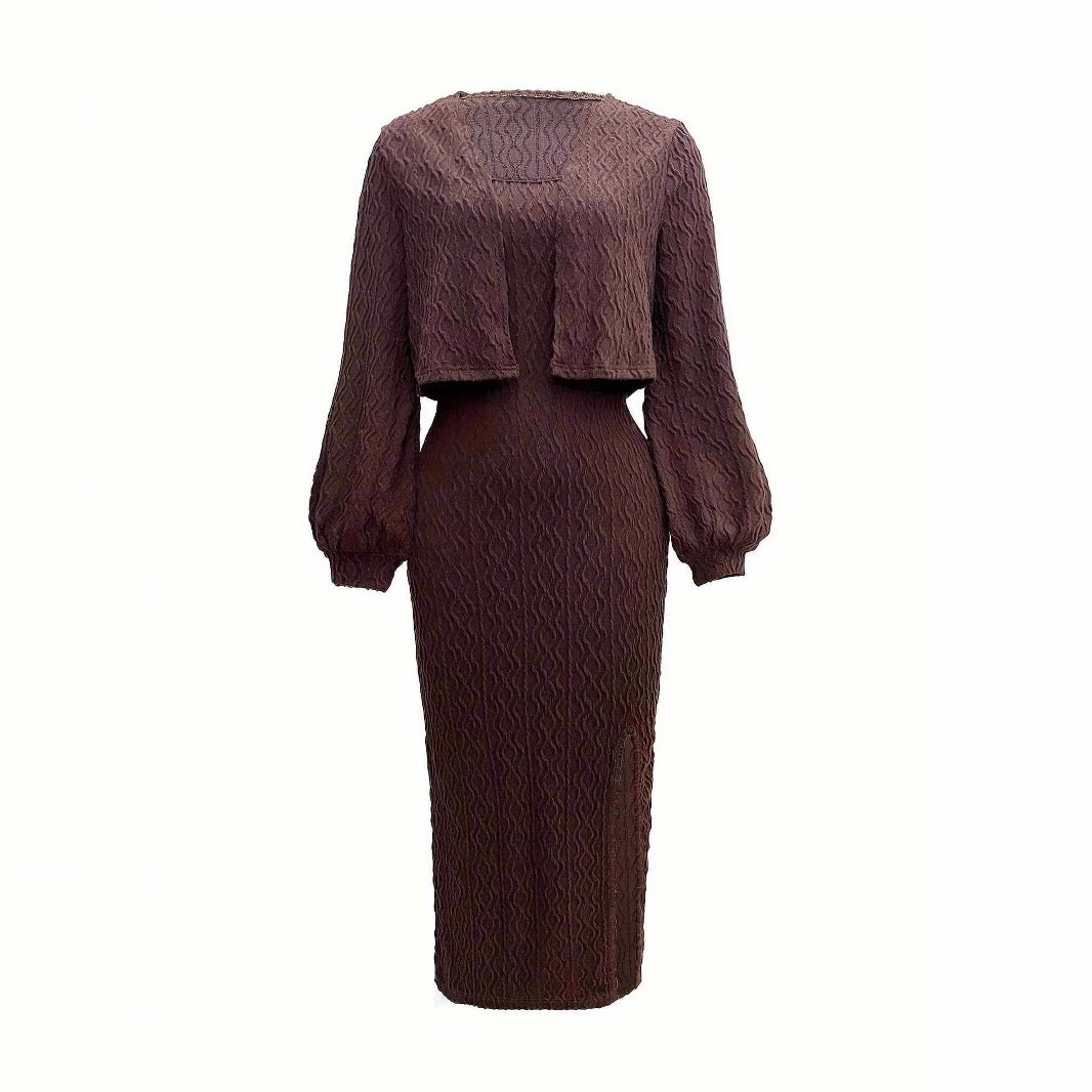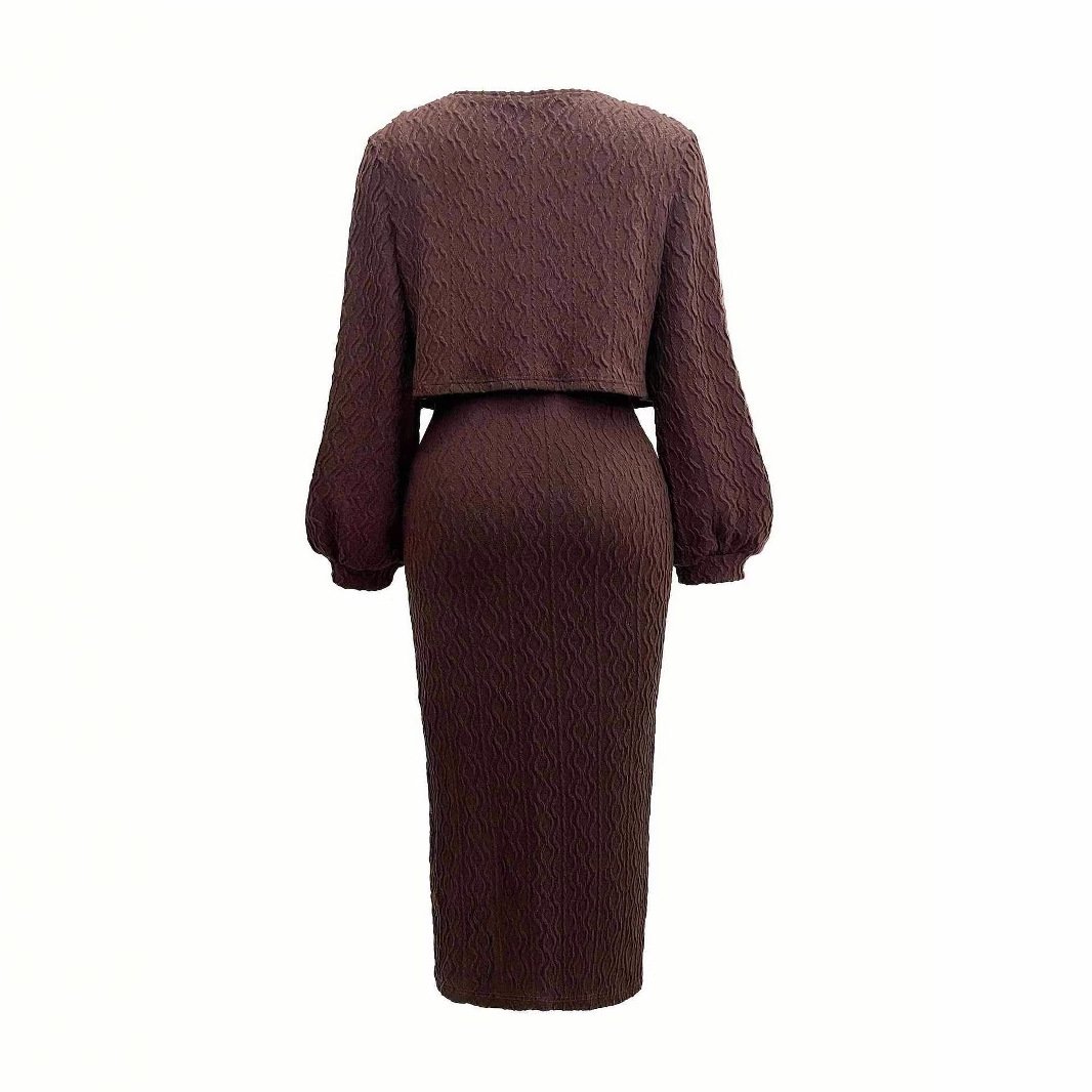 Be the first to review “Knitted twisted strap sling skirt women’s suit fashionable sexy dress jacket long sleeve two-piece set”