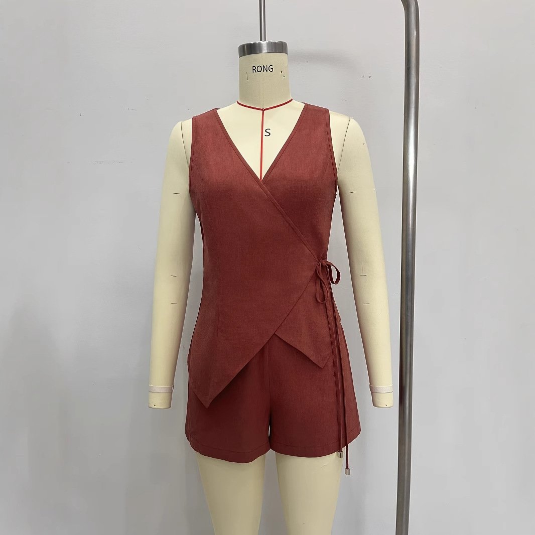 | Casual women’s suit | Sleeveless deep V solid color shorts temperament commuting fashion suit |