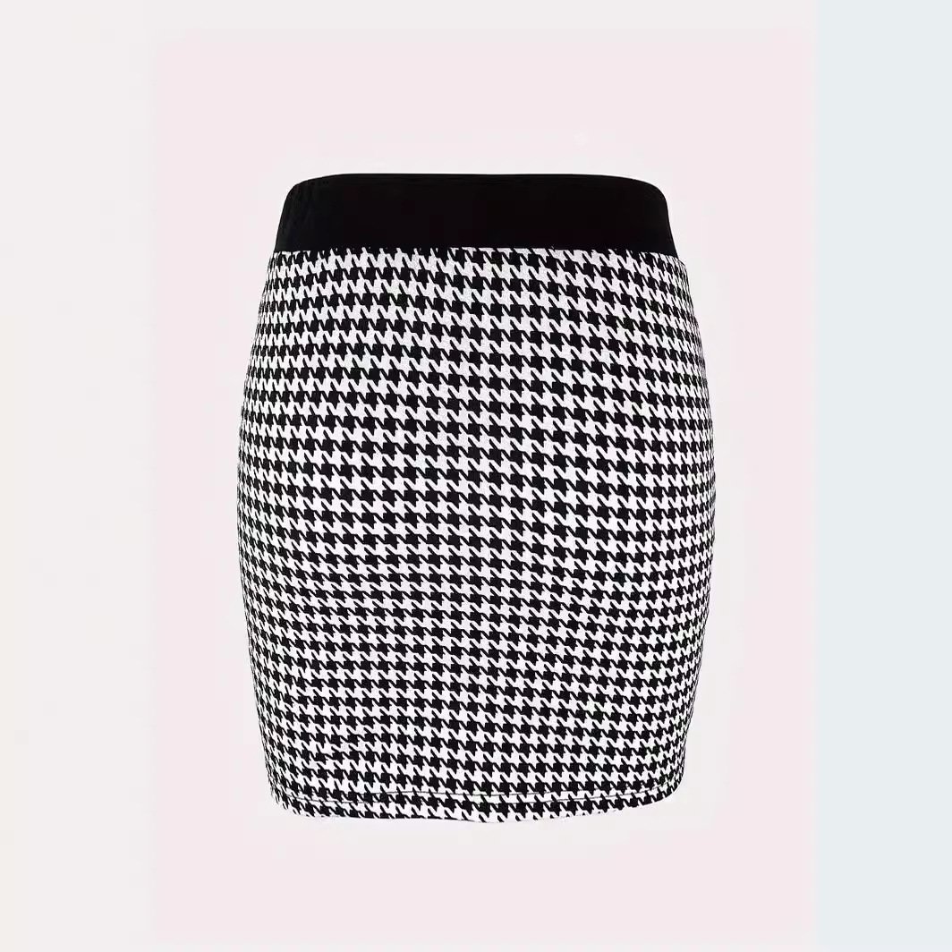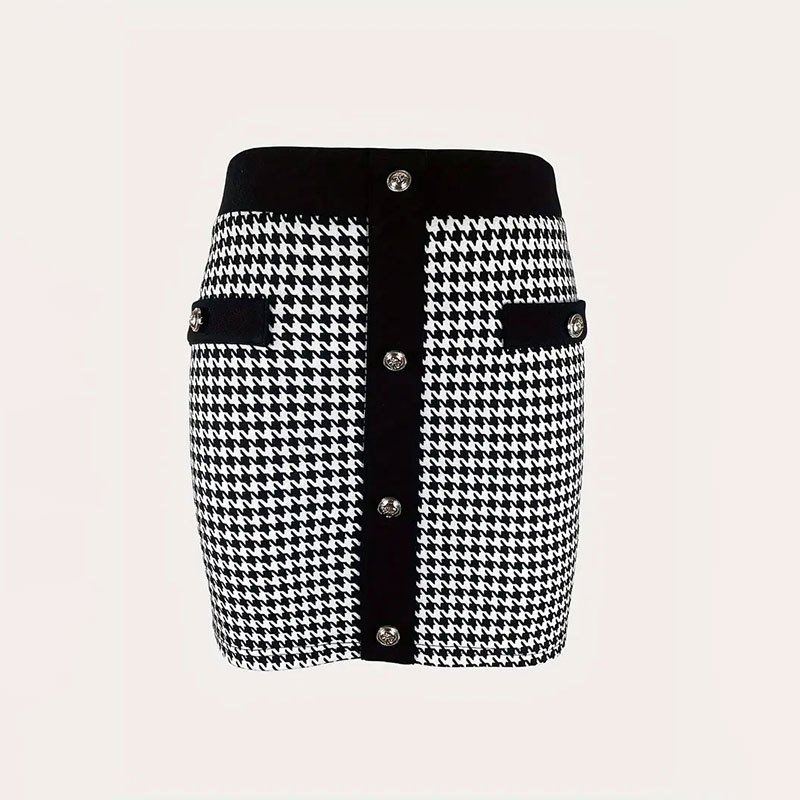 Skirt commuting elegant small fragrance style contrast button elastic skirt short