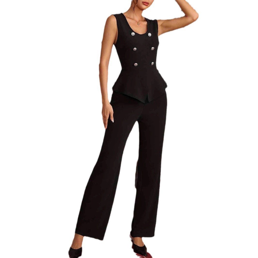 Temperature collar double-breasted sleeveless vest trousers fashionable women’s autumn two-piece set high-end