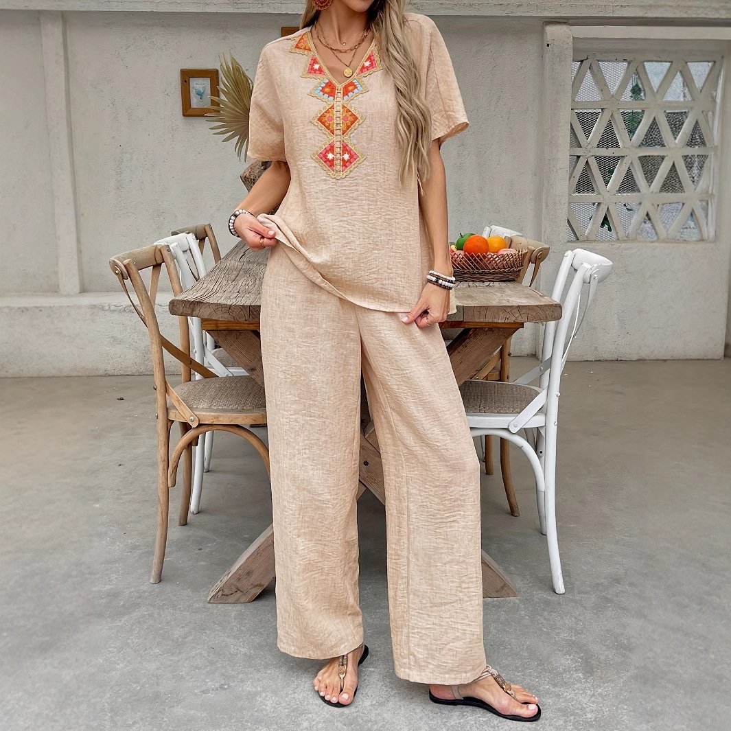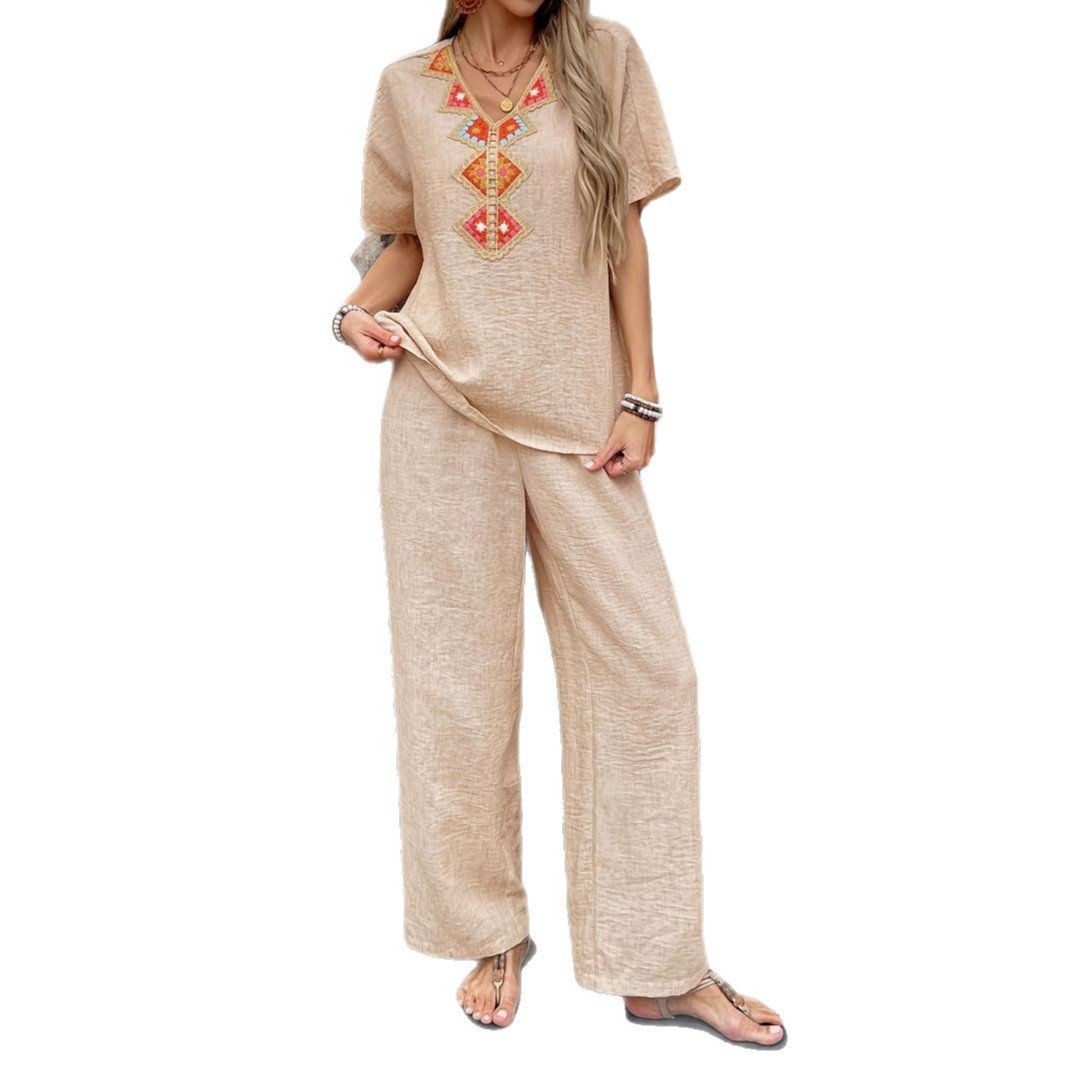 Women’s casual suits, vacation texture, crepe lace, comfortable and loose two-piece set