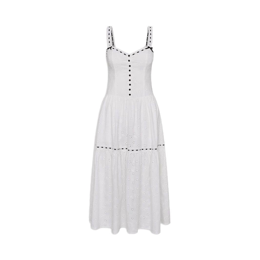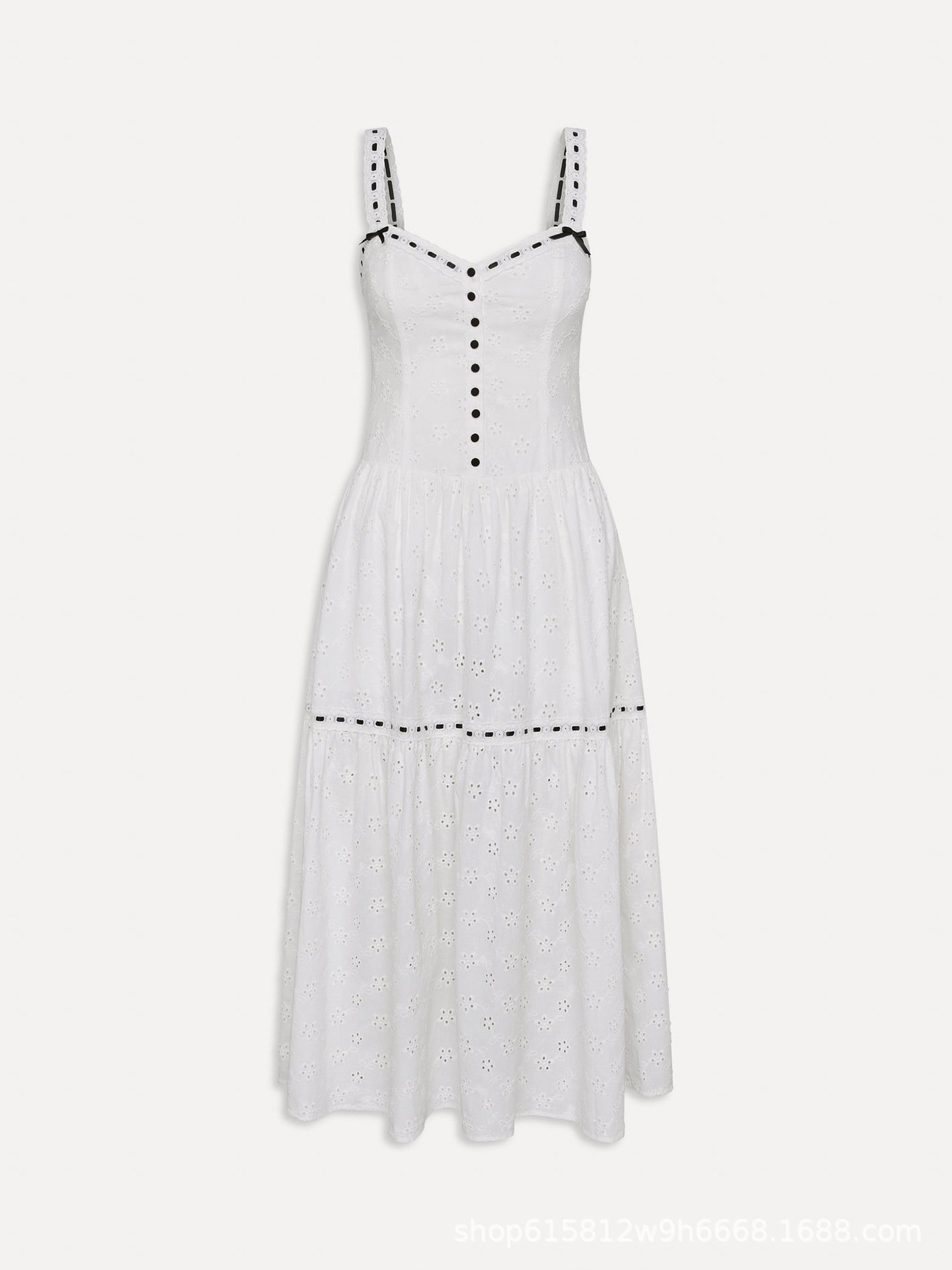 Women’s clothing, hollow elegant slim sleeveless front button design dress, goddess skirt, big hem skirt, suspender skirt