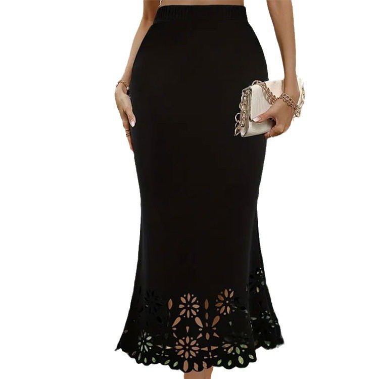 Women’s elegant knitted hip-pack hollowed-out fish tail skirt midi skirt
