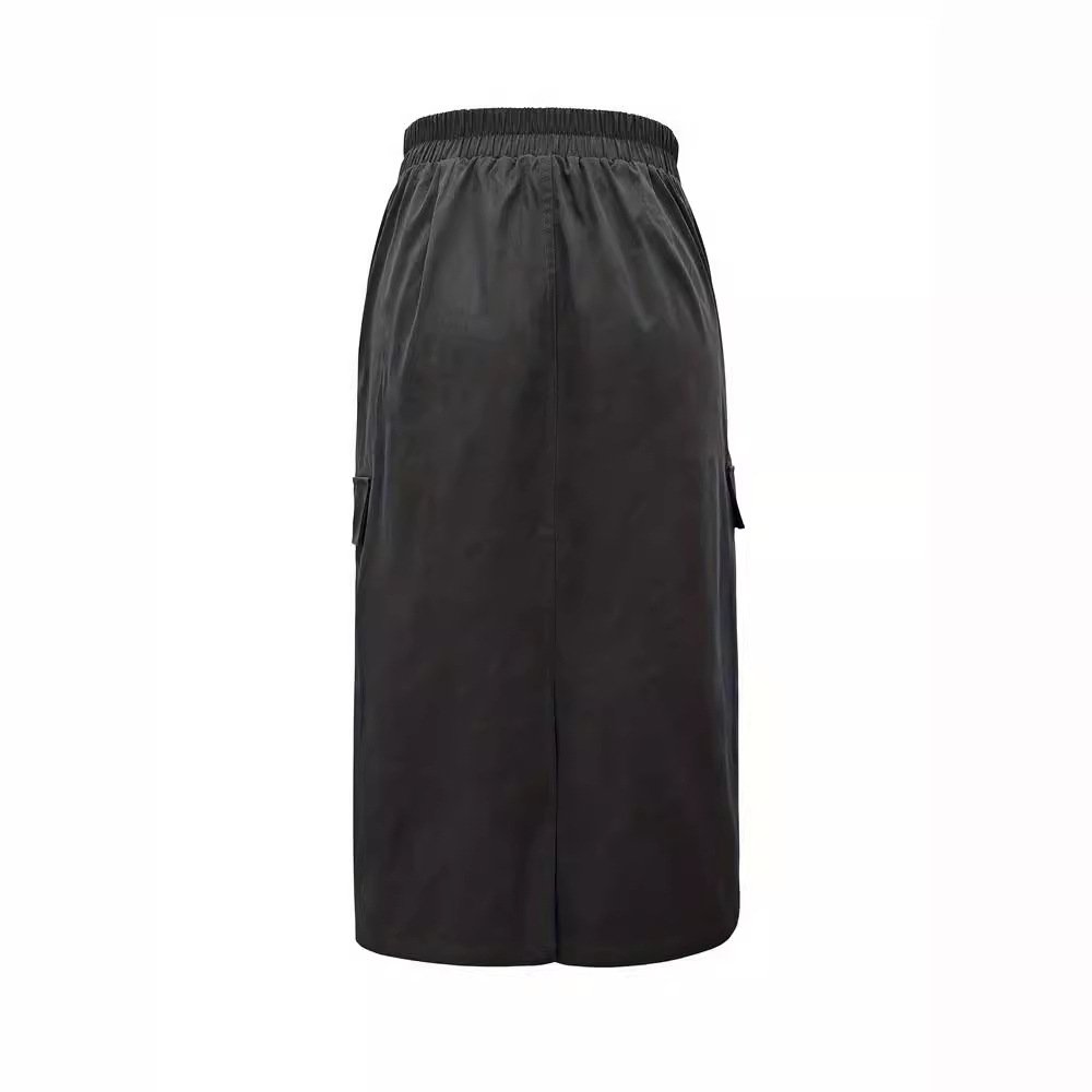 Women’s skirt, versatile, fashionable buttons, personalized patch pocket rear slit, weaving workwear skirt