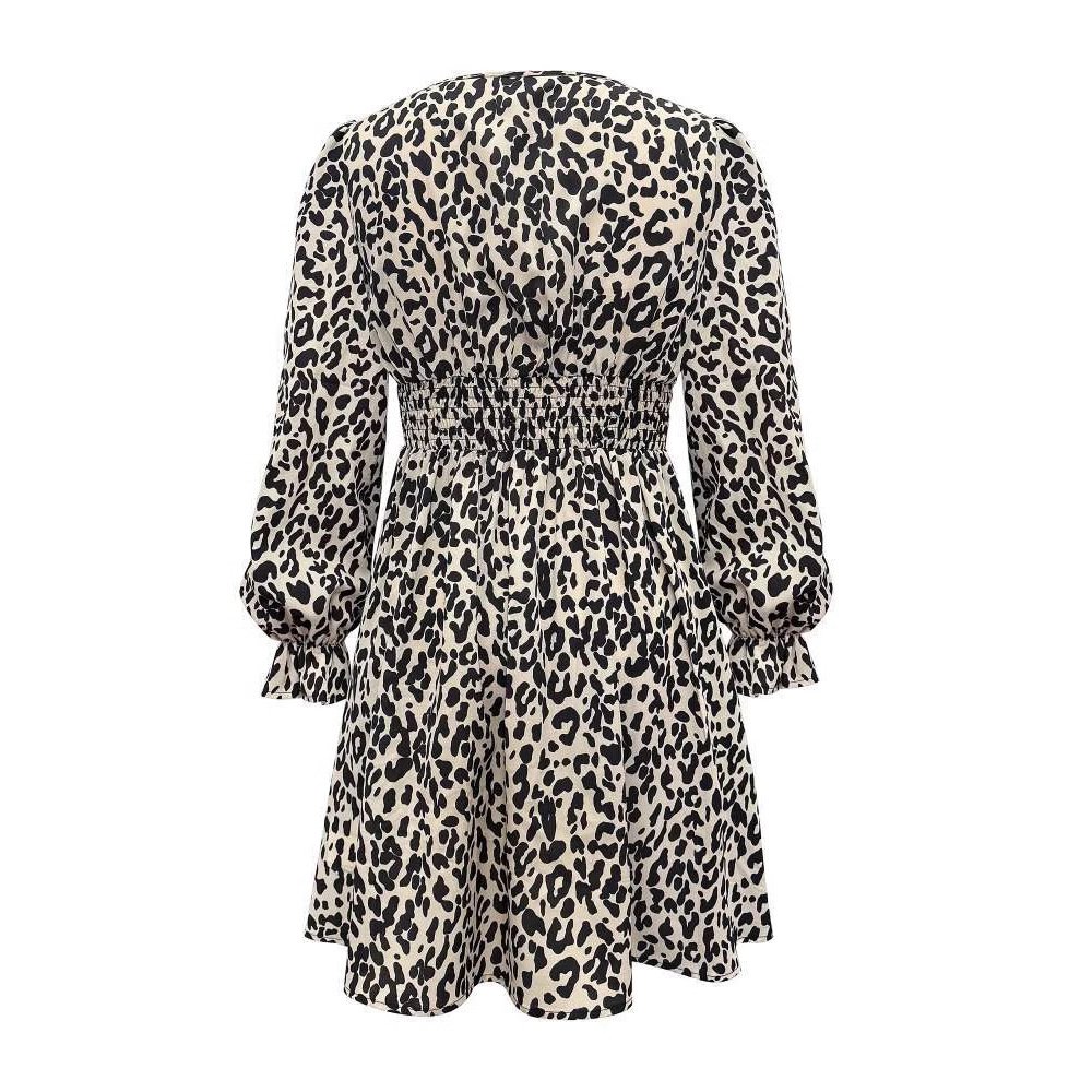 Be the first to review “Women’s Spring and Autumn Bow Sexy Leopard Print Waist Pleated Dress”