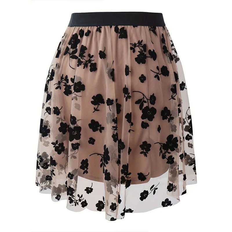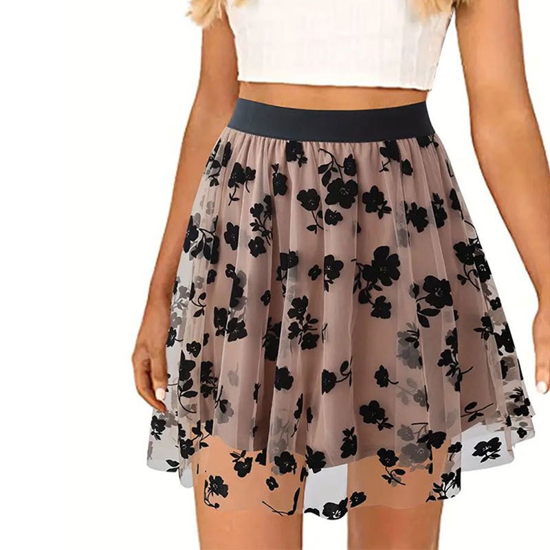 Women’s spring skirt flocking mesh flowers short skirt short skirt high-end feeling